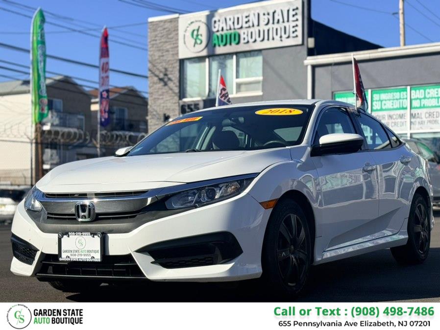 This used 2018 Honda Civic LX is listed at an unlisted price by garden state auto boutique in Elizabeth, NJ 07201. It has 81,720 miles on the odometer. The exterior color is White. It features a FWD drivetrain with a 2.0L I4 engine and CVT transmission.