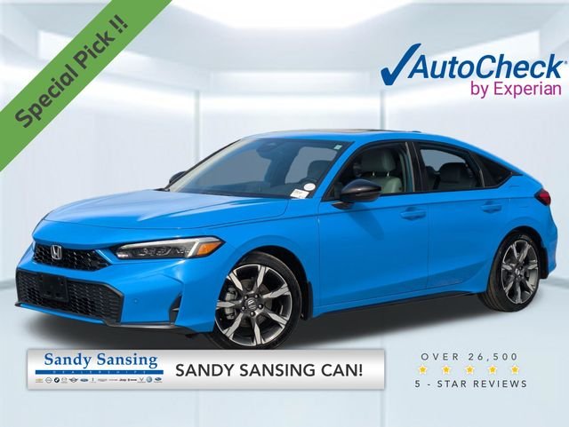 This used 2025 Honda Civic Hatchback Sport Touring is listed at $32,067 by sandy sansing chrysler dodge jeep ram in Milton, FL 32570. It has 19,032 miles on the odometer. The exterior color is Blue. It features a FWD drivetrain with a 2.0L I4 engine and CVT transmission.