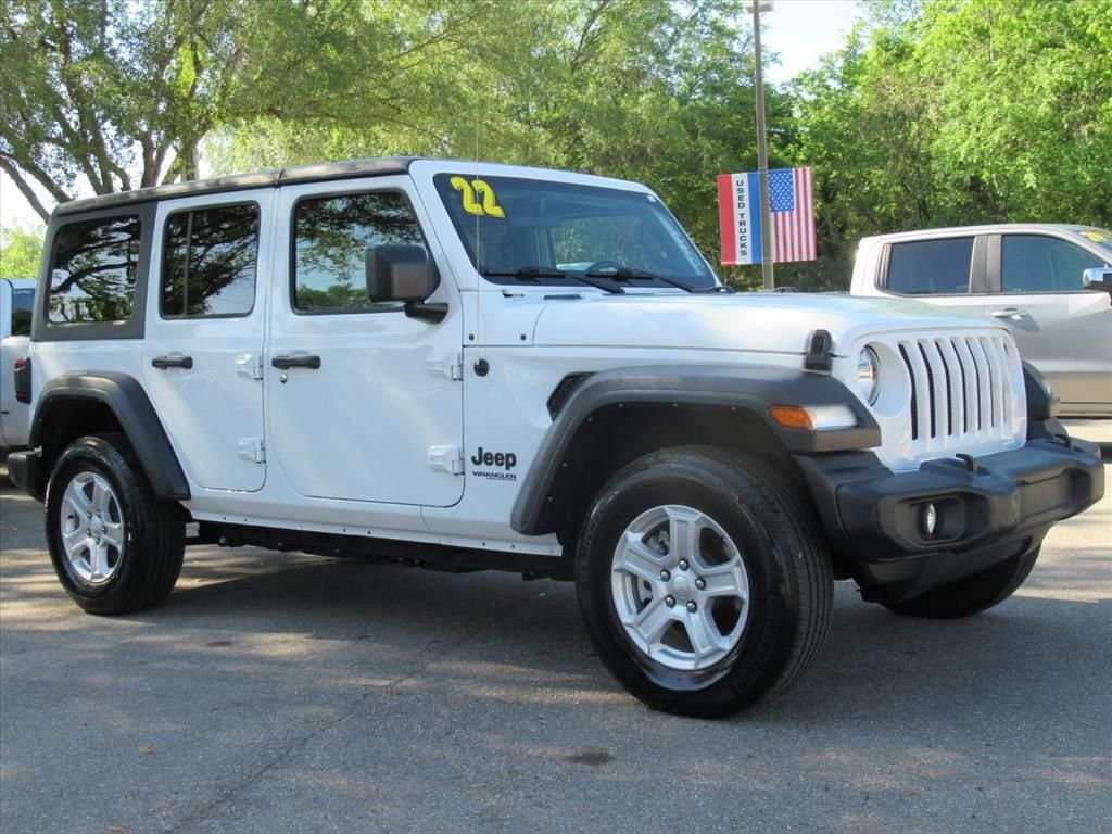 Listing updated: Apr 21, 2026This used 2022 Jeep Wrangler Unlimited Sport S is listed at $31,700 by a dealer in Ocala, FL 34474. It has 23,662 miles on the odometer. The exterior color is White. It features a 4WD drivetrain with a 3.6L V6 engine and Automatic transmission.