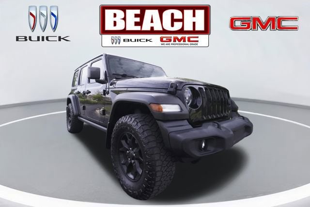 This used 2020 Jeep Wrangler Unlimited Willys is listed at $25,963 by volvo cars myrtle beach in Myrtle Beach, SC 29577. It has 65,405 miles on the odometer. The exterior color is Black. It features a 4WD drivetrain with a 3.6L V6 engine and Automatic transmission.