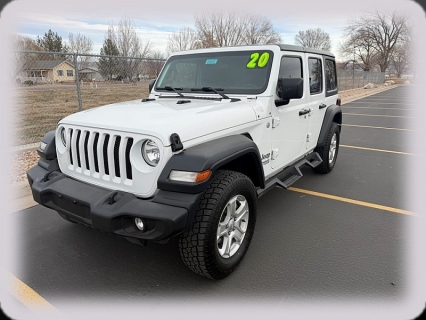 This used 2020 Jeep Wrangler Unlimited Sport S is listed at $21,995 by naples auto sales in Naples, UT 84078. It has 99,174 miles on the odometer. The exterior color is White. It features a 4WD drivetrain with a 2.0L I4 engine and Automatic transmission.