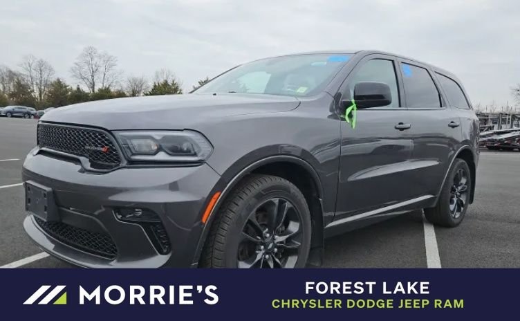 This used 2021 Dodge Durango SXT Plus is listed at $23,495 by a franchise dealer in Forest Lake, MN 55025. It has 69,502 miles on the odometer. The exterior color is Gray. It features a 4WD drivetrain with a 3.6L V6 engine and Automatic transmission.