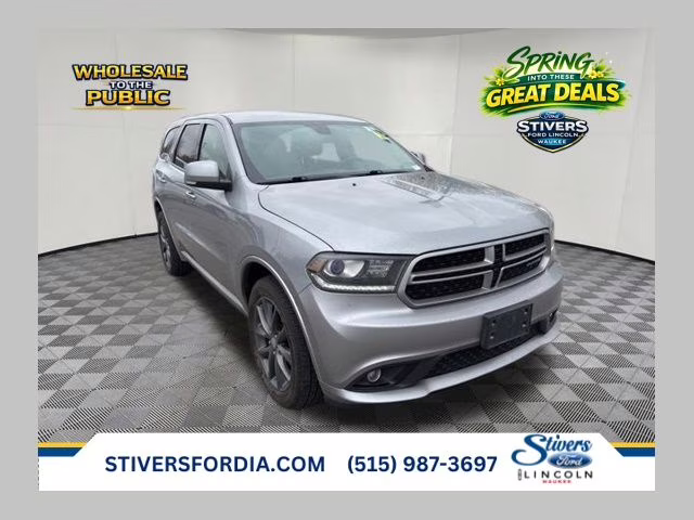 This used 2017 Dodge Durango GT is listed at $14,180 by a dealer in Waukee, IA 50263. It has 143,629 miles on the odometer. The exterior color is Silver. It features a 4WD drivetrain with a 3.6L V6 engine and Automatic transmission.