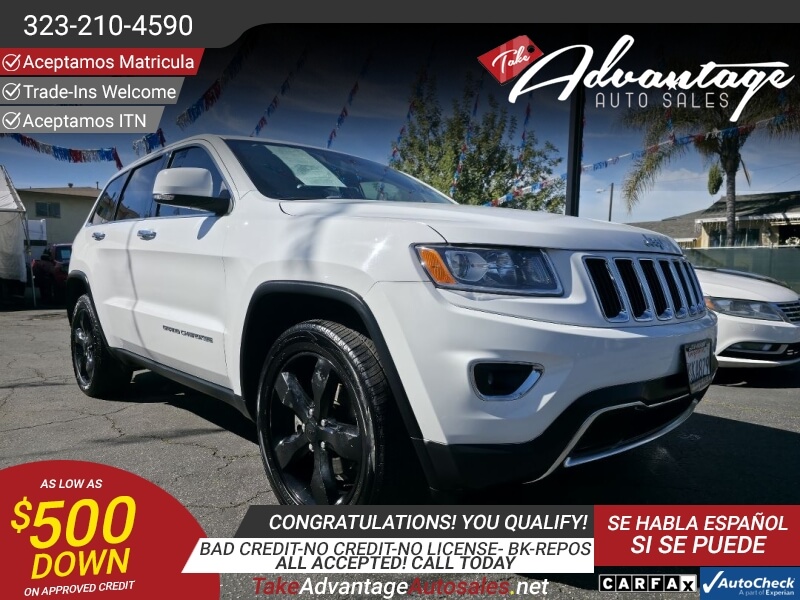 Listing updated: Apr 21, 2026This used 2014 Jeep Grand Cherokee Limited is listed at an unlisted price by a dealer in Bell, CA 90201. It has 136,310 miles on the odometer. The exterior color is White. It features a RWD drivetrain with a 3.6L V6 engine and Automatic transmission.