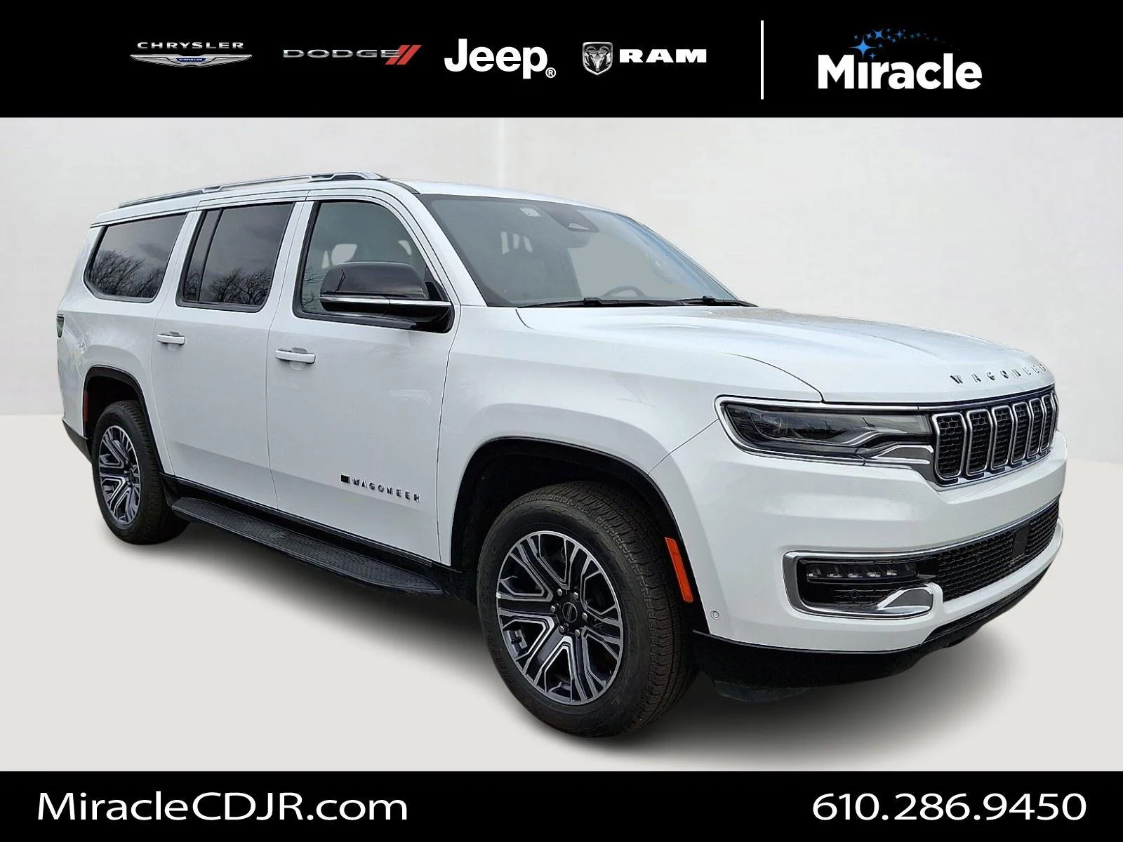 This used 2025 Jeep Wagoneer L Series I is listed at $53,500 by a franchise dealer in Fleetwood, PA 19522. It has 18,898 miles on the odometer. The exterior color is White. It features a 4WD drivetrain with a 3.0L I6 engine and Automatic transmission.
