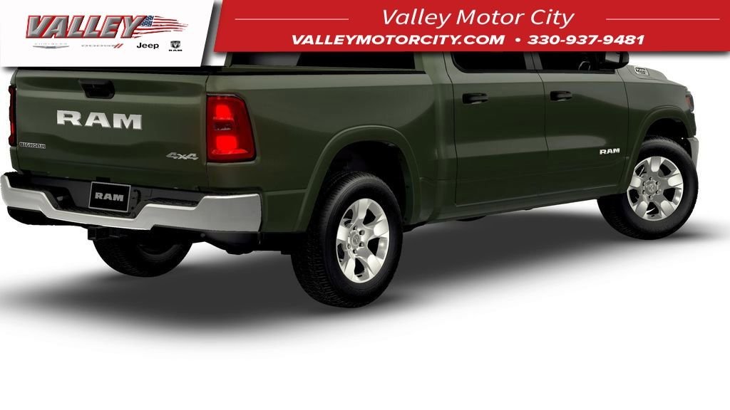 This new 2026 RAM Ram 1500 Pickup Big Horn/Lone Star is listed at $50,814 by a franchise dealer in Valley View, OH 44125. It has 10 miles on the odometer. The exterior color is Green. It features a 4WD drivetrain with a 3.6L V6 engine and Automatic transmission.
