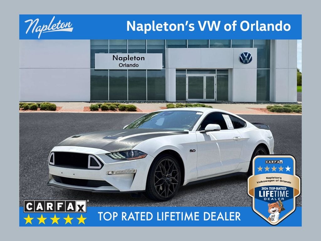 This used 2022 Ford Mustang GT Premium is listed at $41,500 by napleton's volkswagen of orlando in Orlando, FL 32826. It has 35,574 miles on the odometer. The exterior color is White. It features a RWD drivetrain with a 5.0L V8 engine and Automatic transmission.