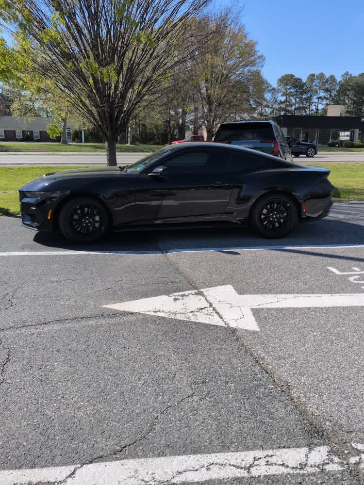 This used 2025 Ford Mustang GT is listed at $48,977 by a franchise dealer in Easton, MD 21601. It has 14,011 miles on the odometer. The exterior color is Black. It features a RWD drivetrain with a 5.0L V8 engine and Automatic transmission.