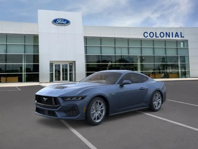 This new 2025 Ford Mustang GT Premium is listed at $55,980 by colonial automotive group in Belmont, MA 02478. It has 36 miles on the odometer. The exterior color is Blue. It features a RWD drivetrain with a 5.0L V8 engine and Automatic transmission.