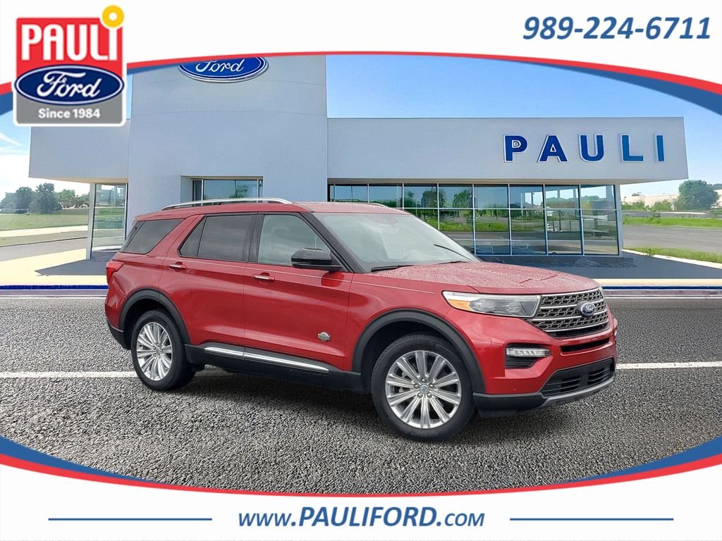 This used 2023 Ford Explorer King Ranch is listed at $43,500 by a franchise dealer in Saint Johns, MI 48879. It has 28,624 miles on the odometer. The exterior color is Red. It features a 4WD drivetrain with a 3.0L V6 engine and Automatic transmission.