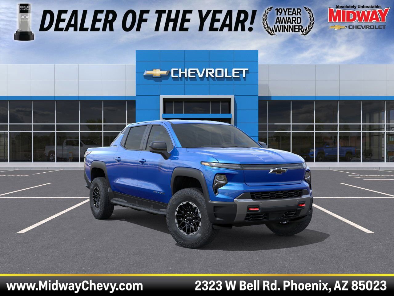 This new 2026 Chevrolet Silverado EV Trail Boss is listed at $72,990 by azcarcentral in Phoenix, AZ 85014. It has 424 miles on the odometer. The exterior color is Blue. It features a 4WD drivetrain and Automatic transmission.