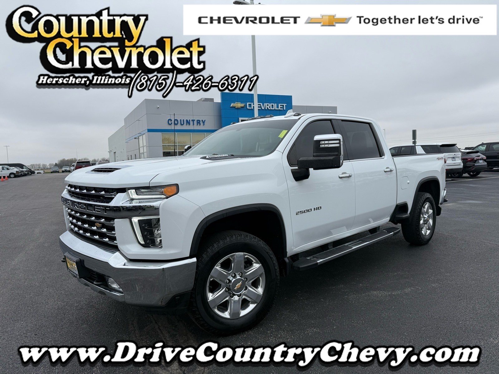 This used 2021 Chevrolet Silverado 2500HD LTZ is listed at $42,990 by country chevrolet, inc. in Herscher, IL 60941. It has 162,909 miles on the odometer. The exterior color is White. It features a 4WD drivetrain with a 6.6L V8 engine and Automatic transmission.