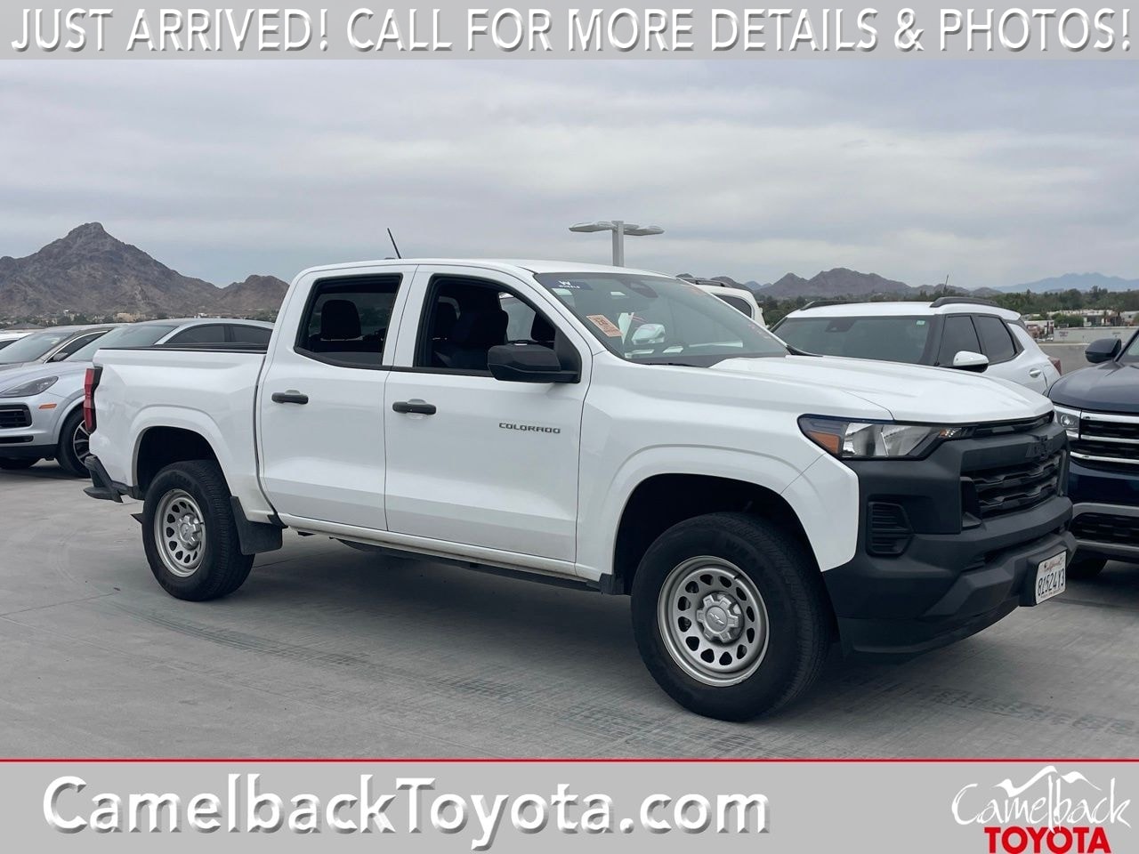 This used 2024 Chevrolet Colorado Work Truck is listed at $28,650 by a franchise dealer in Irving, TX 75063. It has 23,870 miles on the odometer. The exterior color is White. It features a RWD drivetrain with a 2.7L I4 engine and Automatic transmission.