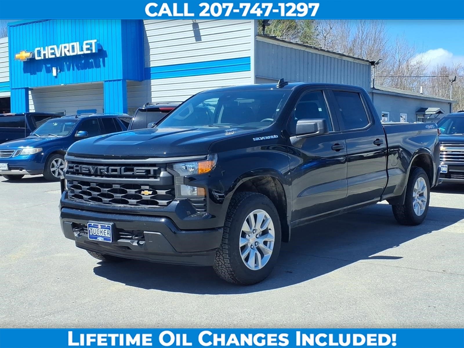 This new 2026 Chevrolet Silverado 1500 Custom is listed at $43,582 by tucker chevrolet in Waldoboro, ME 04572. The exterior color is Black. It features a 4WD drivetrain with a 2.7L I4 engine and Automatic transmission.