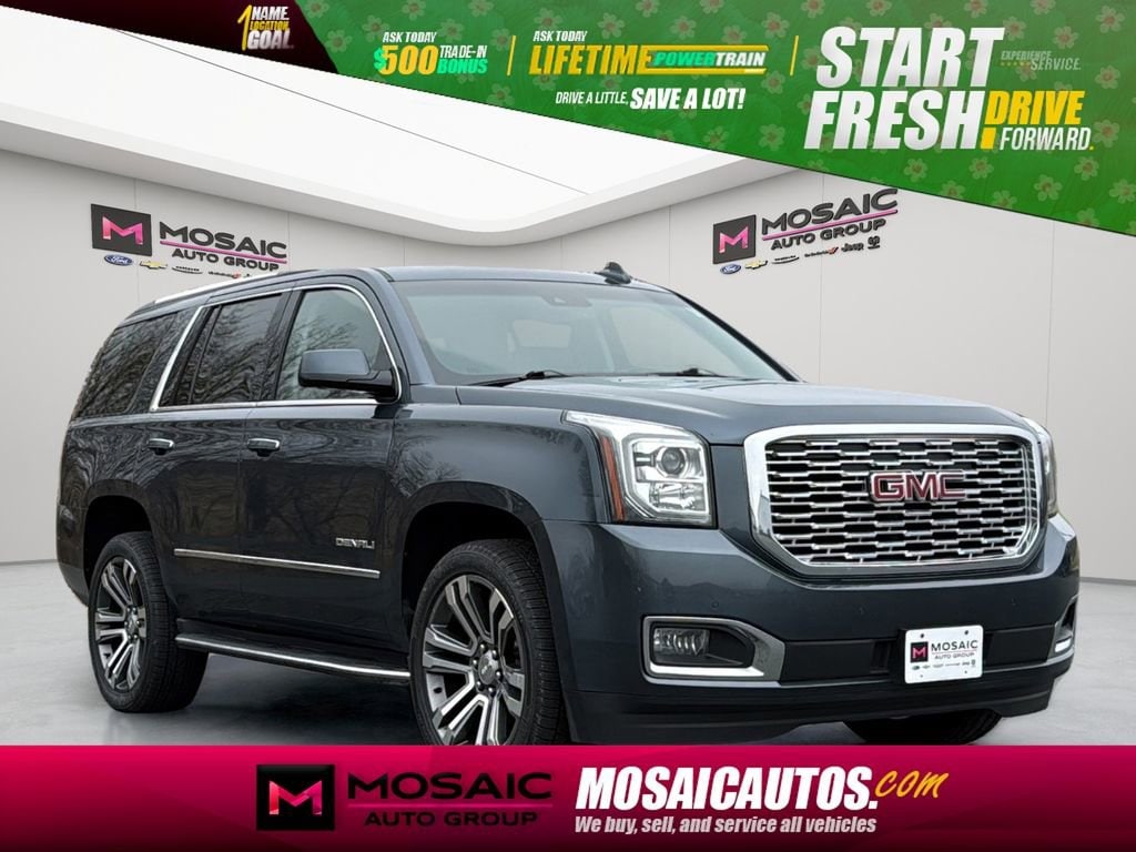 This used 2019 GMC Yukon Denali is listed at an unlisted price by a franchise dealer in Zumbrota, MN 55992. It has 105,954 miles on the odometer. The exterior color is Blue. It features a 4WD drivetrain with a 6.2L V8 engine and Automatic transmission.