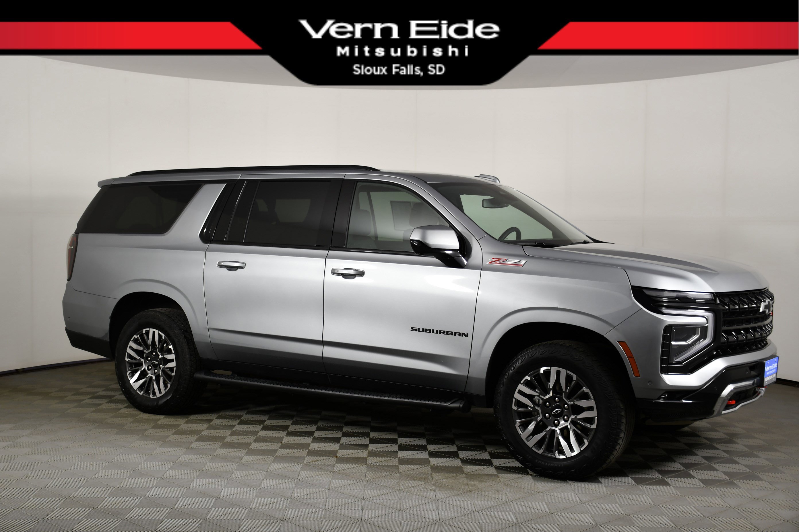 This used 2025 Chevrolet Suburban Z71 is listed at $66,925 by a franchise dealer in Sioux Falls, SD 57108. It has 24,365 miles on the odometer. The exterior color is Gray. It features a 4WD drivetrain with a 5.3L V8 engine and Automatic transmission.