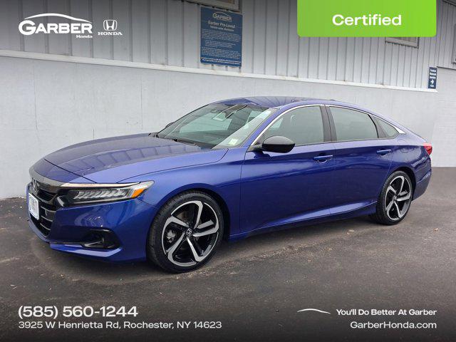 This used 2021 Honda Accord Sport is listed at $23,908 by audi rochester in Rochester, NY 14623. It has 46,429 miles on the odometer. The exterior color is Blue. It features a FWD drivetrain with a 1.5L I4 engine and CVT transmission.