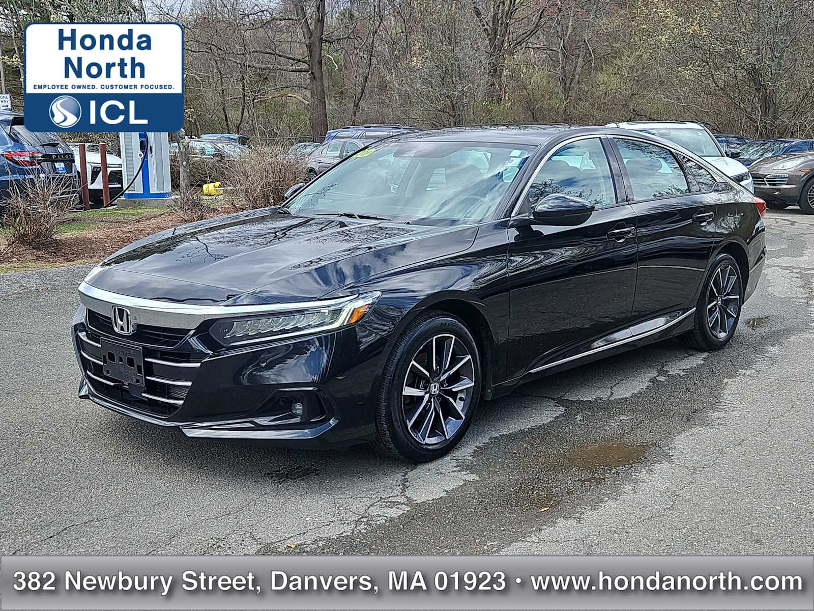 This used 2021 Honda Accord EX-L is listed at $22,878 by a franchise dealer in Stratham, NH 03885. It has 90,078 miles on the odometer. The exterior color is Black. It features a FWD drivetrain with a 1.5L I4 engine and CVT transmission.
