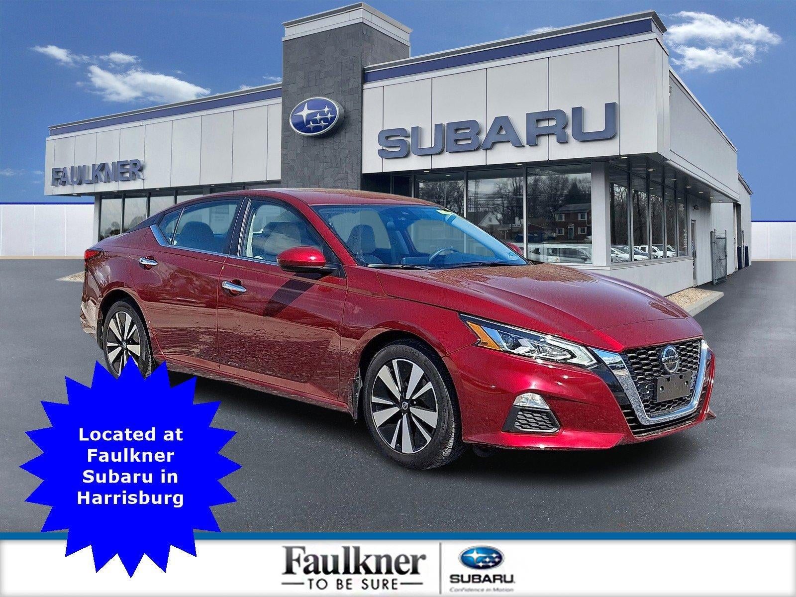 This used 2022 Nissan Altima SV is listed at $21,181 by a franchise dealer in Harrisburg, PA 17111. It has 7,706 miles on the odometer. The exterior color is Red. It features a FWD drivetrain with a 2.5L I4 engine and CVT transmission.