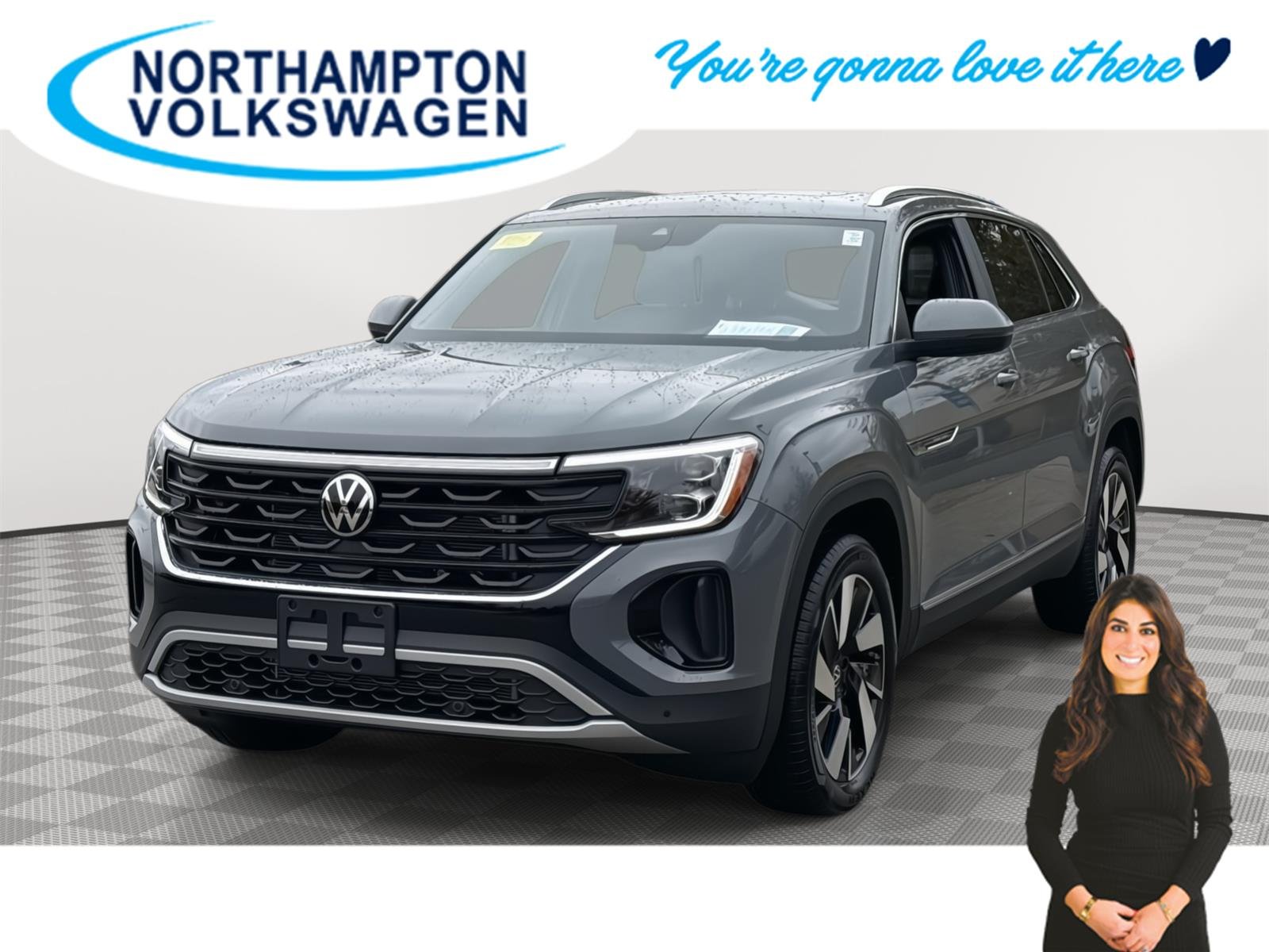 This new 2026 Volkswagen Atlas Cross Sport SEL is listed at $48,589 by northampton volkswagen in Northampton, MA 01060. It has 6 miles on the odometer. The exterior color is Gray. It features a 4WD drivetrain with a 2.0L I4 engine and Automatic transmission.