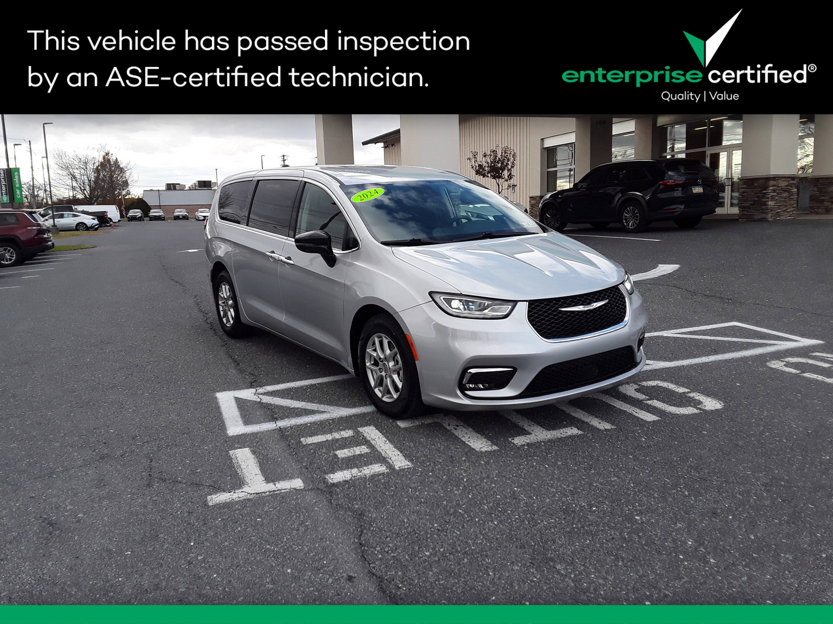 This used 2024 Chrysler Pacifica Touring L is listed at $25,999 by an independent dealer in Wilkes-Barre, PA 18702. It has 56,403 miles on the odometer. The exterior color is Silver. It features a FWD drivetrain with a 3.6L V6 engine and Automatic transmission.