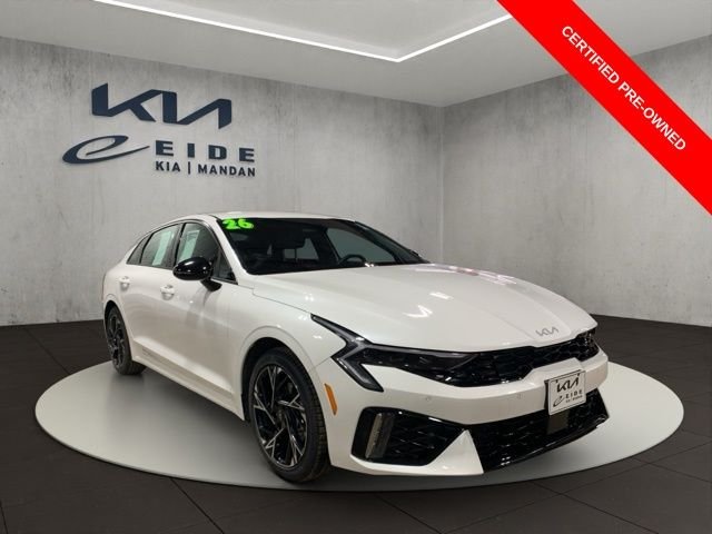 This used 2026 Kia K5 GT-Line is listed at $28,000 by a franchise dealer in Mandan, ND 58554. It has 2,964 miles on the odometer. The exterior color is White. It features a 4WD drivetrain with a 2.5L I4 engine and Automatic transmission.
