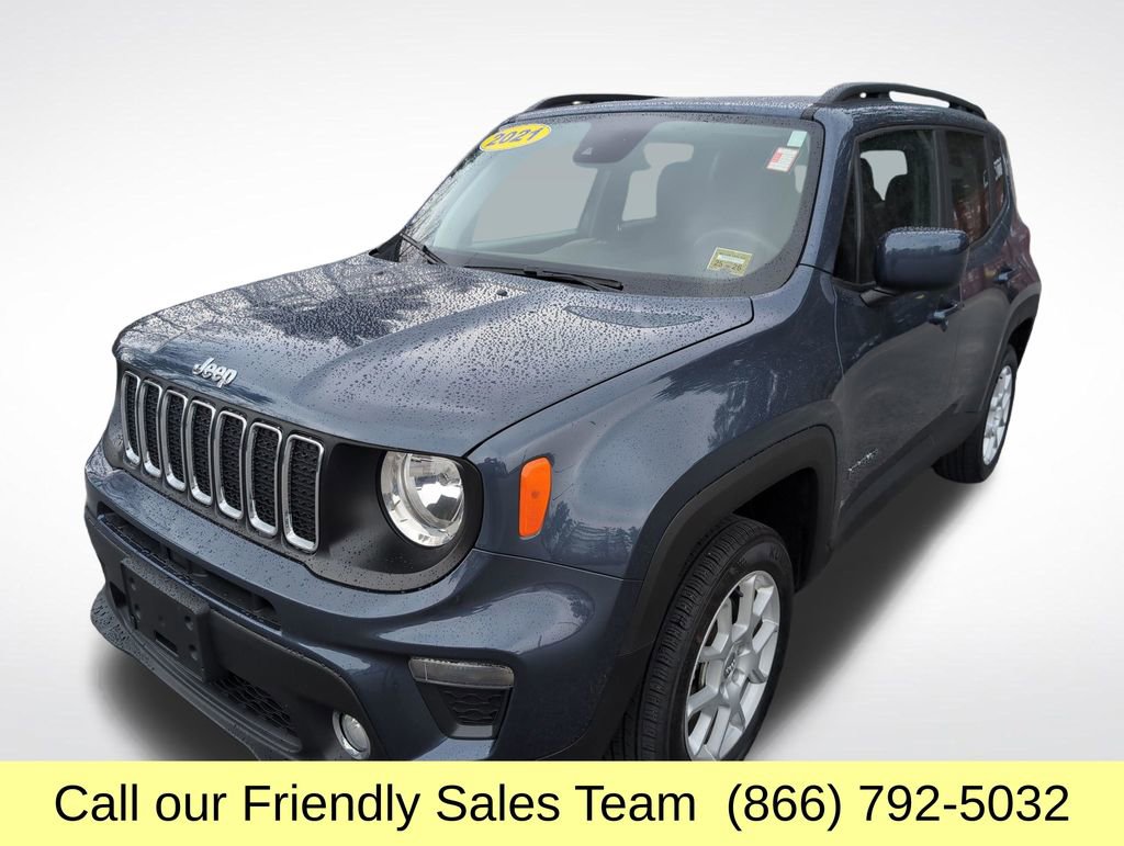 This used 2021 Jeep Renegade Latitude is listed at $15,769 by a dealer in Pittsfield, MA 01201. It has 69,729 miles on the odometer. The exterior color is Blue. It features a 4WD drivetrain with a 2.4L I4 engine and Automatic transmission.